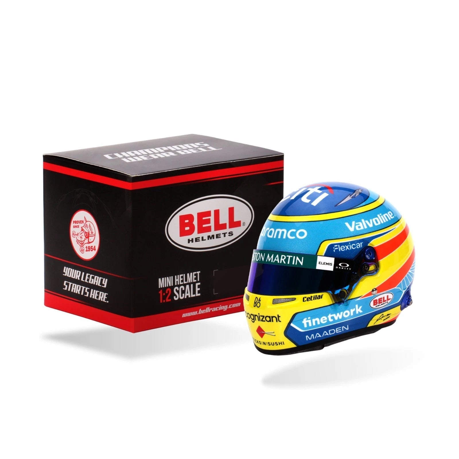 Mini Helmet Marca Bell de Fernando Alonso Temp 2025 Escala 1/2